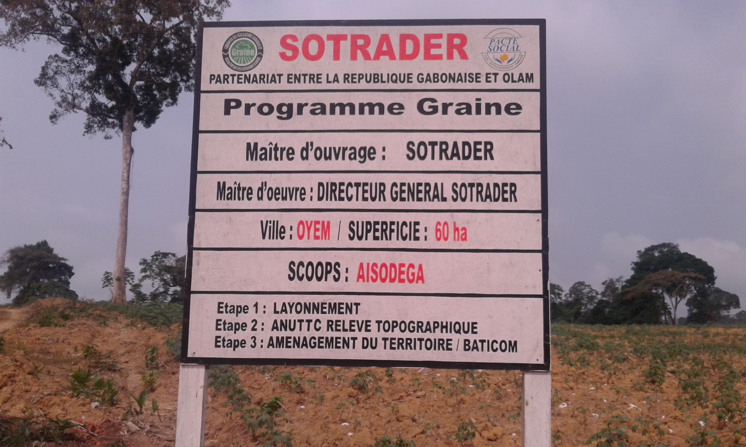 Ensuite, il y a eut la visite du site Adzabikat, exploité par la coopérative AISODEGA (Aide d’Insertion Sociale des Démunis du Gabon(AISODEGA) composée de 36 membres. Le site est déjà à 15 ha exploités, et c’est actuellement la phase de planting de manioc. Les travaux sont pris en charge par Sotrader, mais la coopérative remboursera à long terme les investissements. Par ailleurs, le titre foncier du terrain revient à la coopérative. Il faut préciser que d’ici fin Février 2016, la coopérative va commencer à percevoir l’argent de GRAINE.