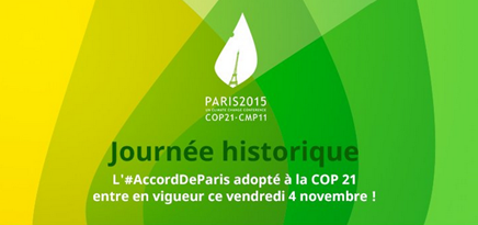 Il s’agit d’une avancée majeure dans la lutte contre le changement climatique. Moins d’un an après l’adoption de l’accord le 12 décembre 2015 et avant le début de la COP22 à Marrakech, cette entrée en vigueur confirme la volonté de la communauté internationale de sauver la planète des effets des dérèglements climatiques.