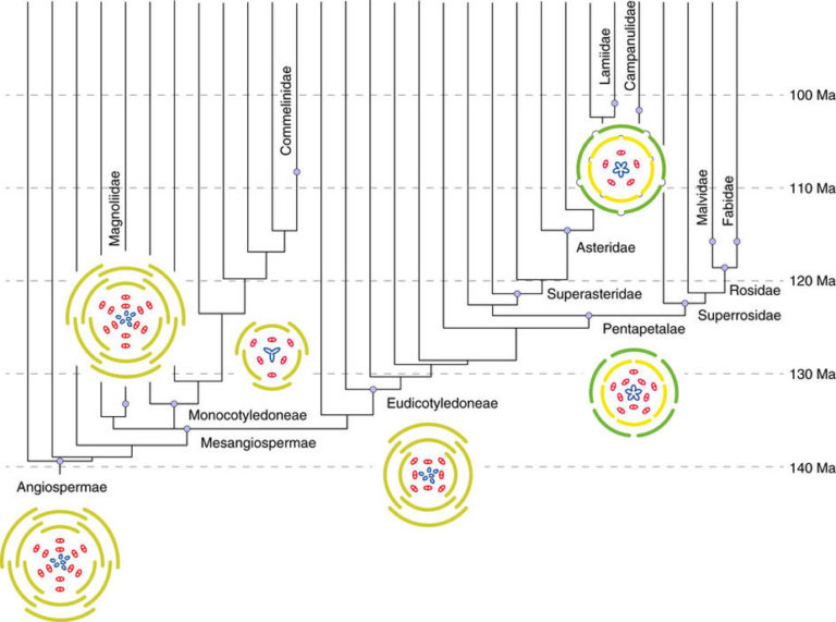 Il n’en a pourtant pas toujours été ainsi. Durant des centaines de millions d’années, les gymnospermes ont été prédominantes à la surface du globe, avec leurs parties reproductrices exposées, là où les angiospermes ont évolué pour qu’elles soient entourées de fleurs qui deviendront des fruits. Les gymnospermes seraient présents sur terre depuis 350 ou 400 millions d’années. Mais de quand date l’apparition des fleurs?
