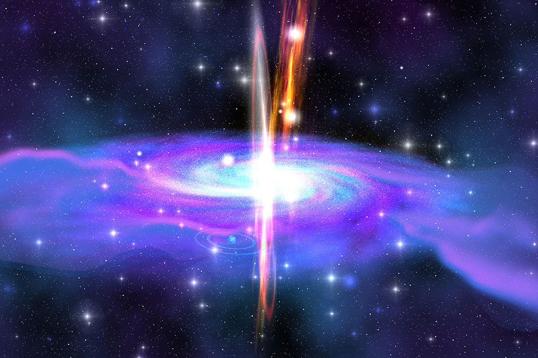 Les scientifiques considèrent qu’ils sont les plus importantes explosions depuis le Big Bang : les éclats de rayons gamma. Ces phénomènes, qui surviennent chaque jour dans l’Univers, dégagent une quantité incommensurable d’énergie. En touchant la planète, une telle manne d’énergie grillerait la couche d’ozone et la plupart des formes de vie seraient alors brûlées par les radiations solaires. Egalement, les températures augmenteraient et des cyclones ravageraient la surface terrestre. Mais un tel scénario a peu de chances de se produire, puisqu’il faudrait qu’un éclat de rayons gamma touche la Terre depuis une distance inférieure à moins de 100 années-lumière, ce qui est extrêmement faible à l’échelle de l’Univers.