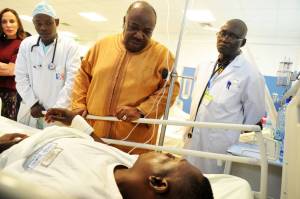 « Je me suis rendu ce jour, en compagnie de la Première Dame, au chevet des victimes du terrible accident de la route qui s’est produit vendredi, à Kango.
