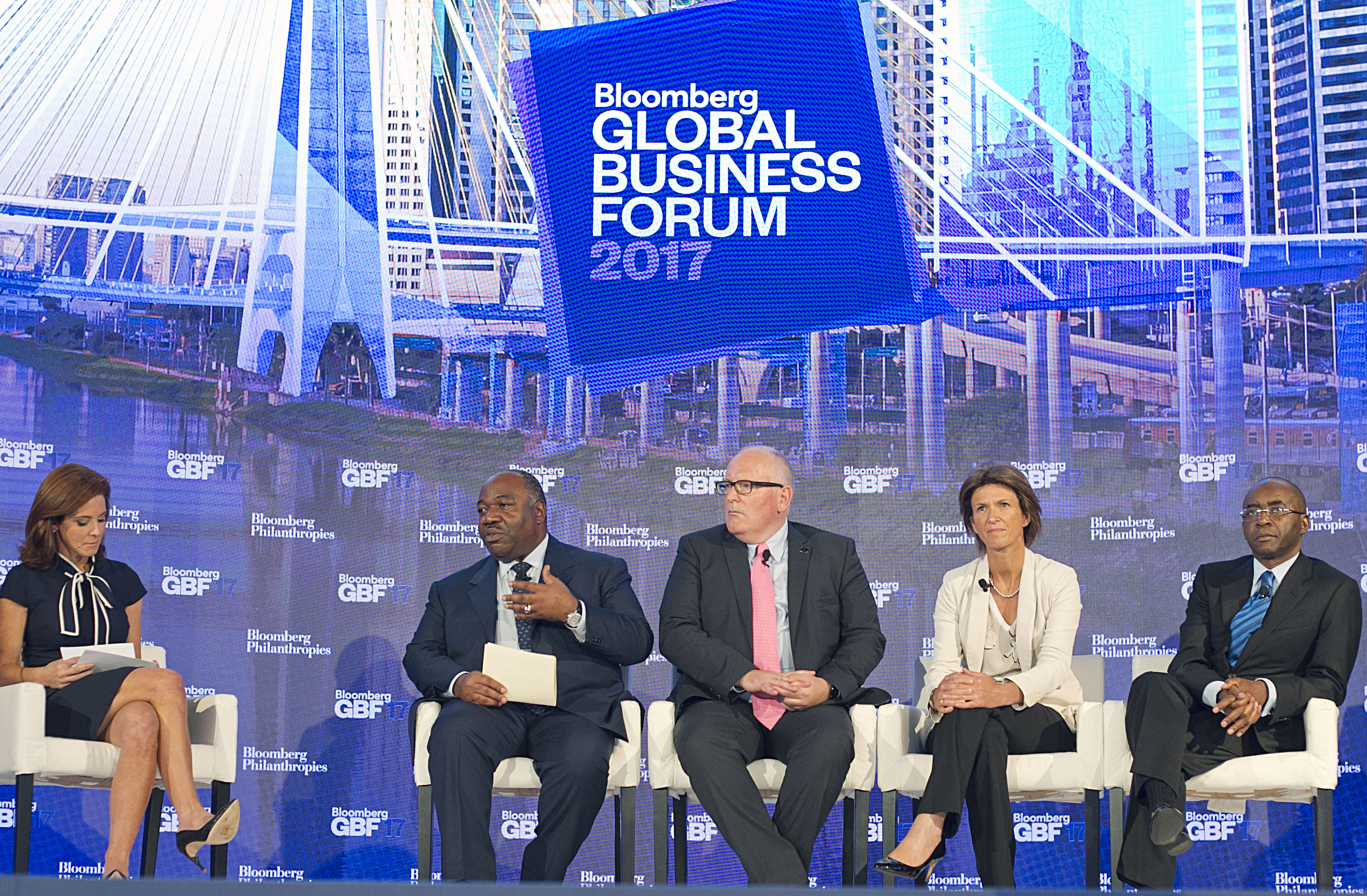 Intervenant aux côtés notamment de Frans Timmermans, premier vice-président de la Commission européenne, sur la thématique « changement climatique, migration de masse et mutation de l’économie », Ali Bongo Ondimba a rappelé l’importance d’apporter une réponse collective et concertée à la question du changement climatique qui constitue, en Afrique, une lourde menace pour la paix et la stabilité des pays.