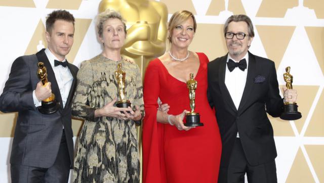 Meilleur film : Phantom Thread, Lady Bird, Dunkerque, Get Out, Les Heures Sombres, La forme de l’eau, Call me by your name, Three Billboards : Les panneaux de la vengeance, Pentagon Papers