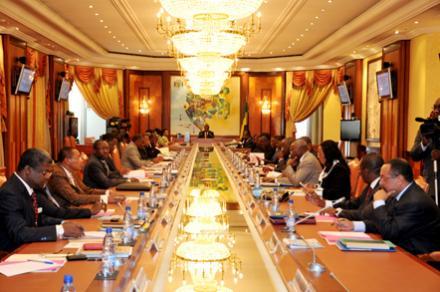 En marge de ces assises, le Chef de l’Etat, en sa qualité de Président en exercice de la Communauté Economique des Etats de l’Afrique Centrale (CEEAC), a présidé une réunion de concertation avec ses pairs Denis SASSOU NGUESSO de la République du Congo, OBIANG NGUEMA MBASOGO de la République de Guinée Equatoriale, Idriss DEBY ITNO de la République du Tchad et les Chefs de Délégation de la République d’Angola, de la République du Burundi, de la République du Cameroun, de la République Centrafricaine, de la République du Rwanda, de la République Démocratique du Congo, de la République de Sao Tomé et Principe.