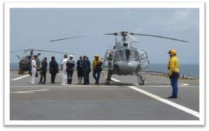 Le 18 février 2019, Philippe Autié, Ambassadeur, Haut Représentant de la République française au Gabon, et le capitaine de vaisseau Vincent Sébastien, Commandant le Task Group 451.04 et le Porte-Hélicoptères Amphibie (PHA) « Mistral », ont invité une délégation des plus hautes autorités gabonaises pour une démonstration à la mer, au large des côtes librevilloises.
