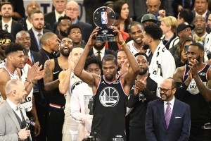 Si la « Team LeBron » a remporté le match et le trophée de meilleur joueur attribué à Durant (31 points, 10 sur 15 au tir), c’est Antetokounmpo qui a fini meilleur marqueur avec 38 points, dont vingt marqués lors des deux premiers quart-temps.