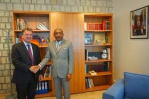 Le 18 mars 2019, Philippe Autié, Ambassadeur, Haut Représentant de la République française, a reçu M. Eric Dodo Bounguendza, Secrétaire Général du Parti Démocratique Gabonais (PDG), accompagné de M. Augustin Ndong Mba, Secrétaire National chargé des relations avec le Parlement et le Gouvernement et de l’animation politique de la province de l’Estuaire, et de Mme Estelle Flore Angangou, Conseiller du Distingué Camarade Président auprès du Secrétaire Général, Porte-parole du PDG. Cet entretien a été l’occasion d’un tour d’horizon général sur la vie du Parti, la situation du pays et la relation bilatérale.