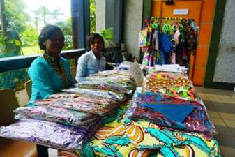 Les participants à ce déjeuner « Goût de France » ont également pu découvrir les créations de « l’Association Action Sociale Dorcas », puisqu’un stand d’exposition/vente était tenu par la directrice de l’association. Une opportunité pour les convives de contribuer à l’autonomisation des jeunes filles prises en charge par l’association en achetant un ou plusieurs articles (accessoires de cuisine en wax, comme des tabliers, des chemins de table, etc.).