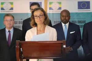 Co-présidé par le Ministre des Affaires Etrangères, M. Alain-Claude BILIE BY-NZE, et l’Ambassadrice de l’Union européenne, Mme Rosário BENTO PAIS, le dialogue associait, du côté gabonais, le Ministre d’État, Ministre de l’Intérieur, de la Justice, Garde des Sceaux, la Ministre de la Défense Nationale, la Ministre des Relations avec les Institutions Constitutionnelles et les Autorités Administratives Indépendantes et le Ministre de la Communication et de l’Economie Numérique ; l’Ambassadrice de l’Union européenne était accompagnée par les Ambassadeurs d’Espagne, de France et d’Italie et le Chargé d’Affaires de l’Allemagne.
