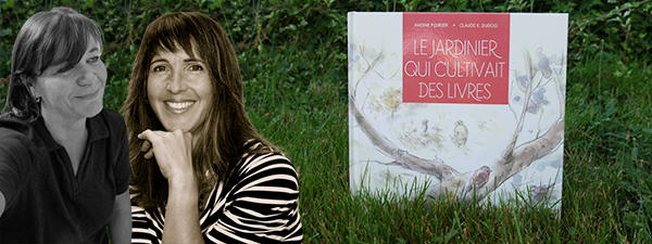 Et si vous vous retiriez du monde pour aller, dans une vallée éloignée et un jardin foisonnant, cultiver… des livres ? C’est ce qui constitue le quotidien du personnage principal de cet album qui parlera aussi bien aux enfants qu’à tout grand lecteur. Le jardinier, chassé par le village où il vivait avant, coule une vie paisible… Jusqu’au jour où, tout sourire et de terre recouverte, une petite fille sans parents surgit entre deux feuilles de son jardin. Cette rencontre, qui va doucement et profondément les changer, est le sujet de ce livre intergénérationnel qui parle d’humains, de connaissances, de famille et d’histoires. Nous avons interrogé son autrice, Nadine Poirier et son illustratrice, Claude K. Dubois, dont vous avez très certainement déjà croisé le trait en littérature jeunesse.