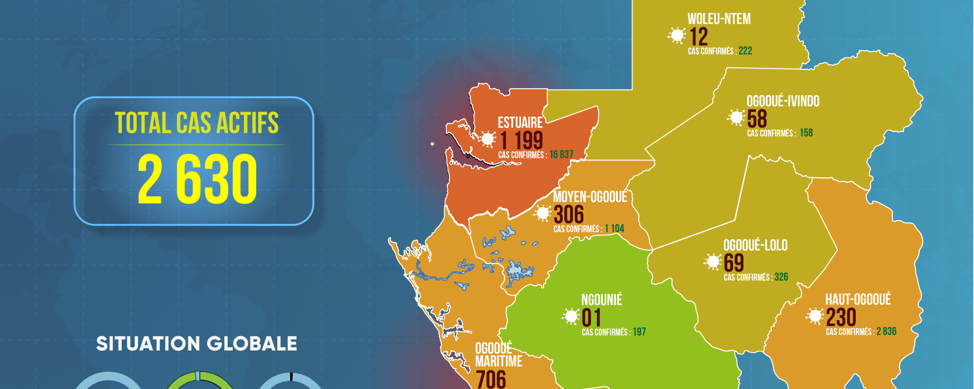 – Haut Ogooué : 01 nouveau cas positif sur 48 prélèvements à Franceville, soit un total de 2 836 cas confirmés ;