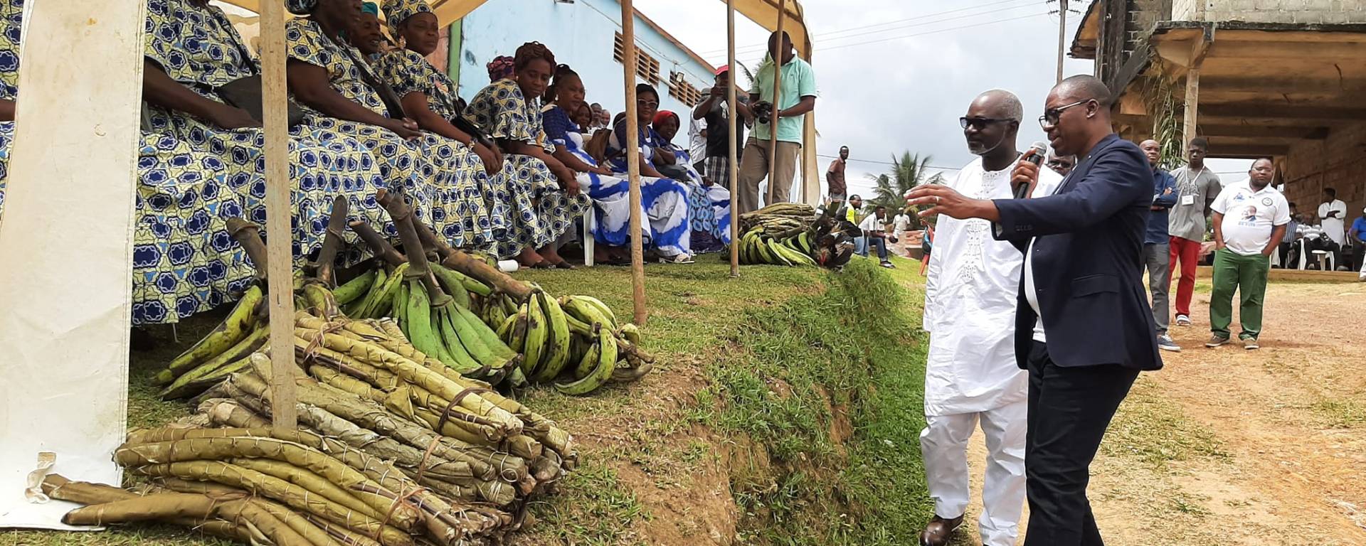 En effet, c’est dans le cadre d’une rencontre citoyenne, au secteur Hollywood, du quartier Mekom-Nkodjen que lesdites populations, d’une manière unanime et autour de leur 𝗠𝗮𝗶𝗿𝗲 𝗧𝗶𝘁𝘂𝗹𝗮𝗶𝗿𝗲 ont tenu à festoyer et à donner leur onction divine au fils du 𝗖𝗵𝗿𝗶𝘀𝘁, 𝗖𝗵𝗲𝗻 𝗦𝘆𝗹𝘃𝗲𝘀𝘁𝗿𝗲 𝗠𝗲𝘇𝘂𝗶 𝗺’𝗢𝗯𝗶𝗮𝗻𝗴. Lequel, durant son intervention a rendu l’ascenseur au 𝗗𝗶𝗲𝘂 𝗰𝗿é𝗮𝘁𝗲𝘂𝗿, 𝗠𝗮î𝘁𝗿𝗲 𝗱𝗲 𝗹’𝗨𝗻𝗶𝘃𝗲𝗿𝘀 et, également au 𝗣𝗿é𝘀𝗶𝗱𝗲𝗻𝘁 𝗱𝗲 𝗹𝗮 𝗥é𝗽𝘂𝗯𝗹𝗶𝗾𝘂𝗲, 𝗔𝗹𝗶 𝗕𝗼𝗻𝗴𝗼 𝗢𝗻𝗱𝗶𝗺𝗯𝗮, de l’avoir validé et légaliser aux prestigieuses fonctions de 𝗠𝗲𝗺𝗯𝗿𝗲 𝗱𝘂 𝗚𝗼𝘂𝘃𝗲𝗿𝗻𝗲𝗺𝗲𝗻𝘁 de la Nation.