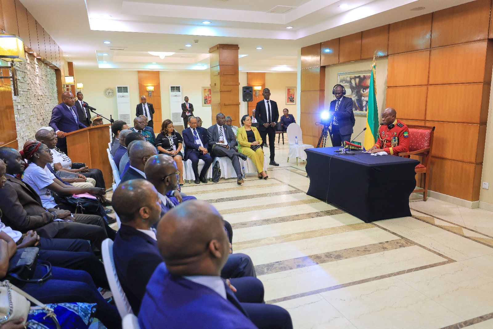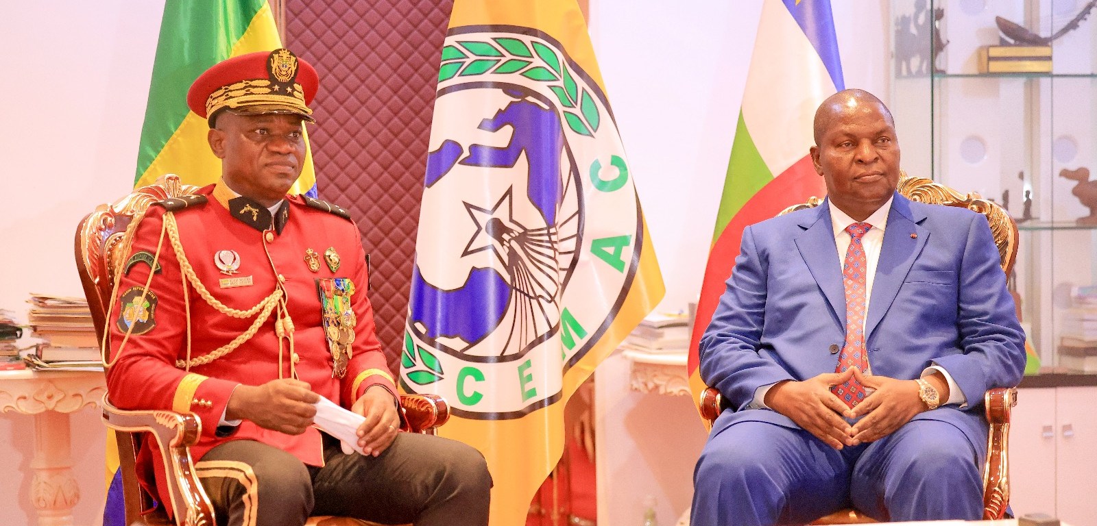 Résolument engagé dans sa politique de restauration des Institutions de la République et du Gabon dans les grandes instances internationales, le Général Brice Clotaire Oligui Nguema est venu faire au Pr. Faustin Archange Touadera le point sur les avancées de la Transition au Gabon au nombre desquelles la nomination des membres de l’Assemblée nationale et du Sénat de la Transition en vue d’engager au plus vite le dialogue social avec toutes les couches de la population.