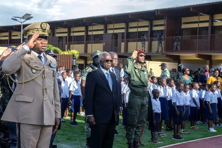 Après avoir pris part à la levée des couleurs, le Chef de l’État a visité la salle des professeurs, la salle informatique et l’infirmerie. A l’issue de ce tour du propriétaire, les apprenants ont livré un spectacle axé autour des couleurs du drapeau. Le Général Brice Clotaire Oligui Nguema a communié avec les apprenants visiblement ravis d’accueillir le président de la République dans leur établissement.