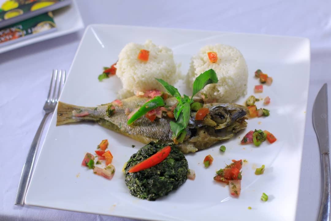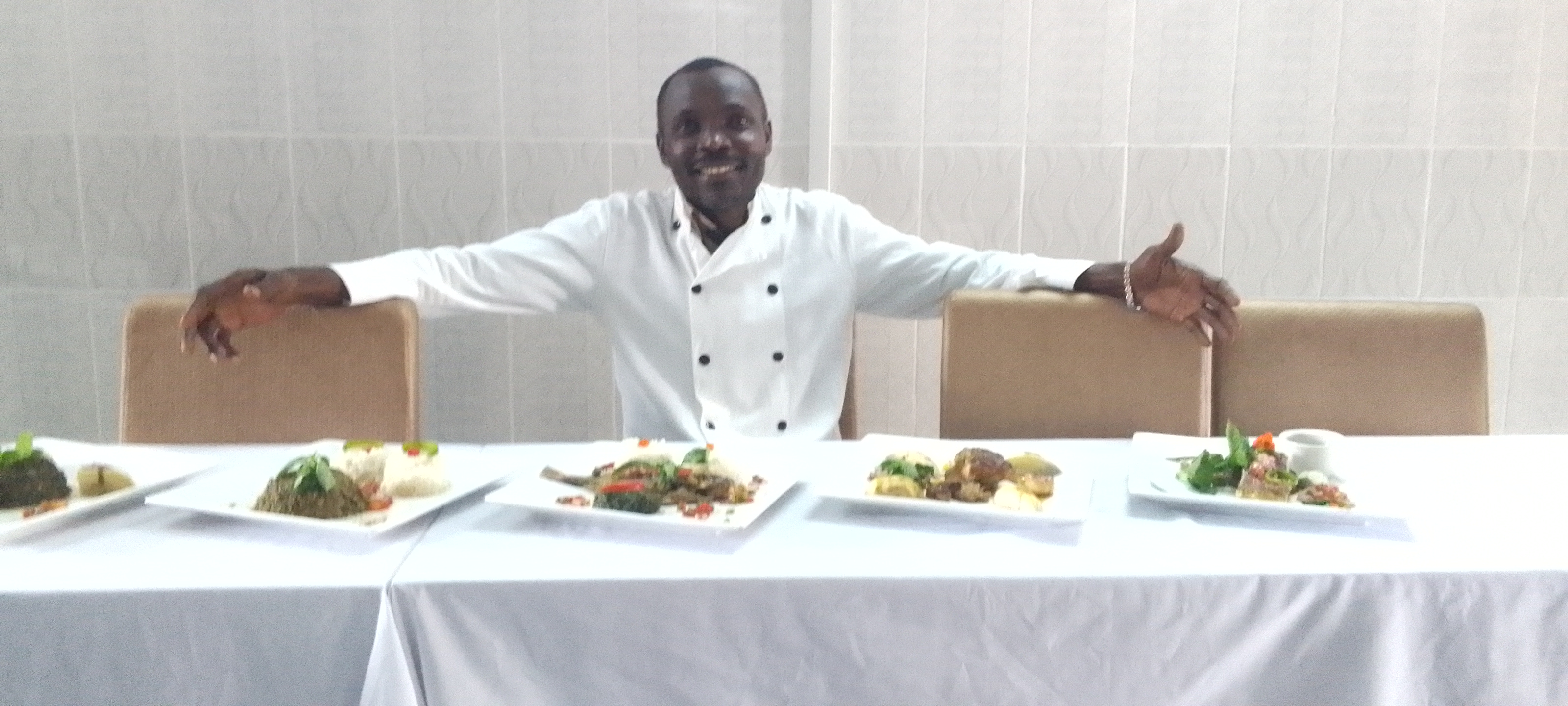 Aussi, son restaurant « Félicité » propose des menus spéciaux rendant hommage à la cuisine gabonaise. Il est possible d’y déguster du Filet de poisson dans sa salade de légumes, agrémenté de son onctueuse sauce amarante au lait de coco qu’un poulet Nyembwe au lait de coco avec son cercle de légumes frais, un sauté de poulet à l’amarante dans son cercle de légumes, un poché de poisson vapeur aux herbes locales agrémenté d’une poêlée d’amarante, un haché de feuilles de manioc à la vapeur avec beurre de cacahuète et maquereau fumé ou pour finir un fourré de poulet vapeur à la patate douce et aux herbes locales, agrémenté d’une poêlée d’amarante.