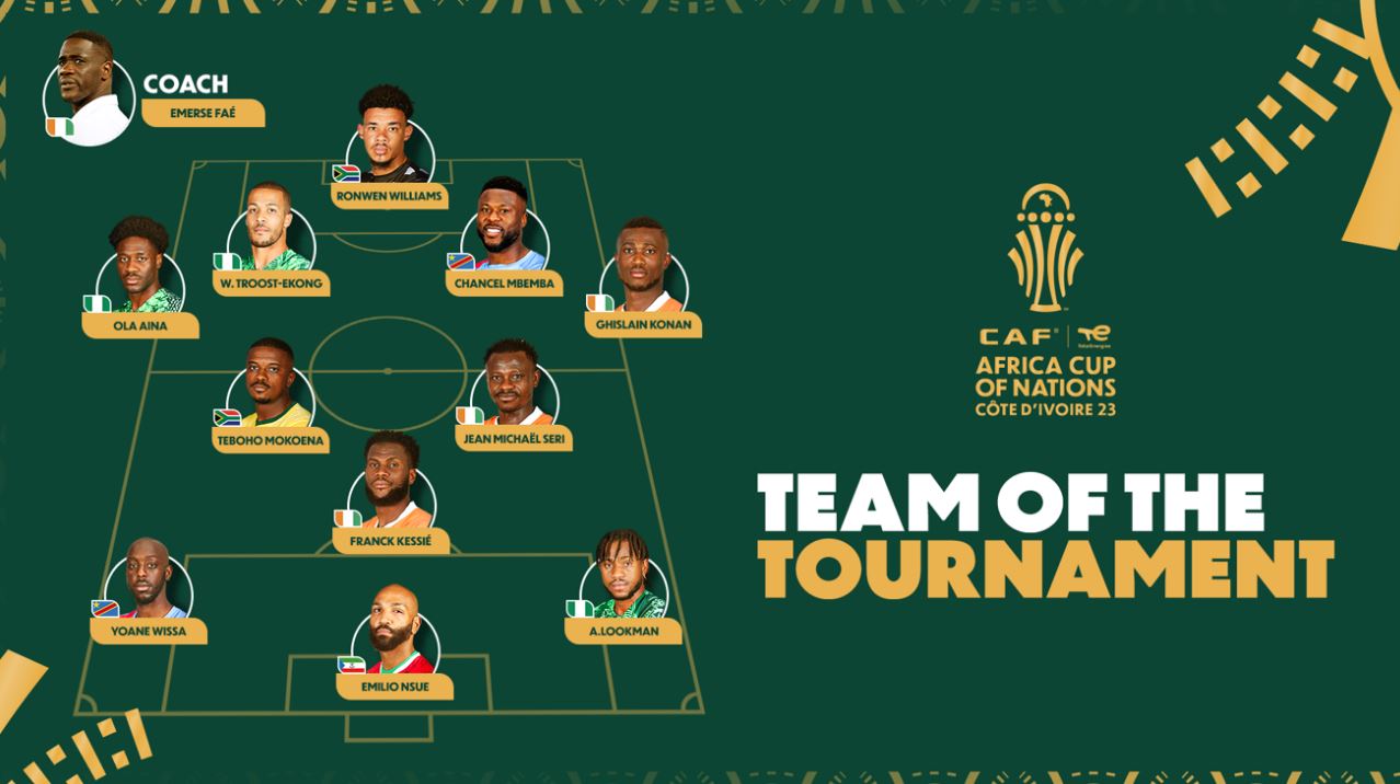 L’équipe type de la Coupe d’Afrique des Nations CAF TotalEnergies, Côte d’Ivoire 2023 (Système 4-3-3)