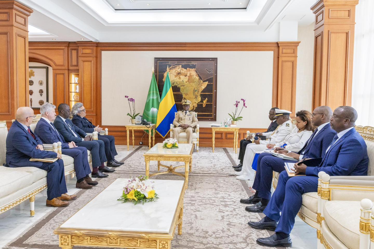 Le Général Brice Clotaire Oligui Nguema, Chef de l’État, a rencontré le jeudi 07 mars, Philippe Labonne, Président d’Africa Global Logistics, pour discuter des projets d’investissement et de développement au Gabon, notamment l’expansion du chantier naval de Port-Gentil et la création d’un hub logistique à l’intérieur du pays visant à soutenir l’industrie locale.