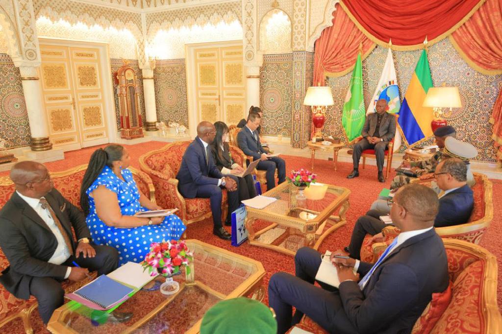 Le Président de la Transition, le Général Brice Clotaire Oligui Nguema a reçu le 18 avril dernier monsieur Zhu Pengfei, Vice-Président du groupe CR20 introduit au Cabinet présidentiel par monsieur Philippe Mintoghe, Administrateur Directeur Général du Groupe 3AAA.