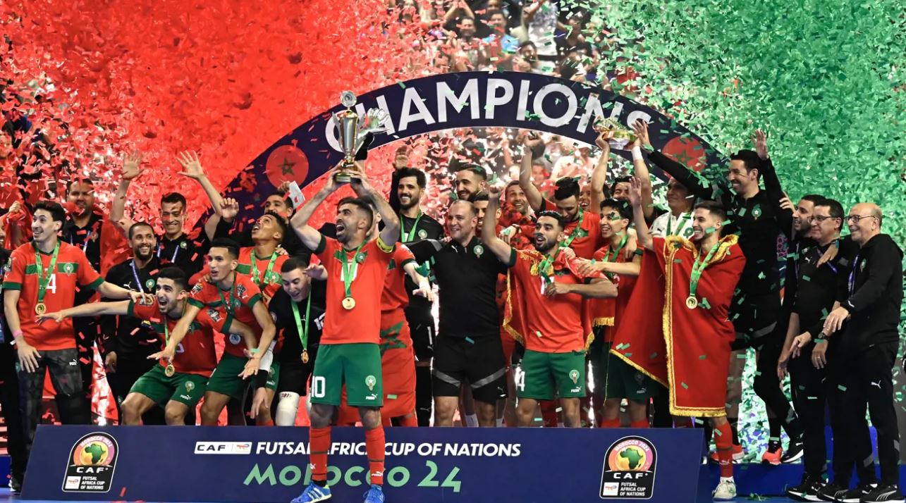 Pour la troisième fois consécutive, le Maroc est sacré champion d’Afrique de Futsal. À domicile, les Lions de l’Atlas ont disposé de l’Angola 5-1 en finale de la Coupe d’Afrique des Nations CAF TotalEnergies 2024, dimanche.