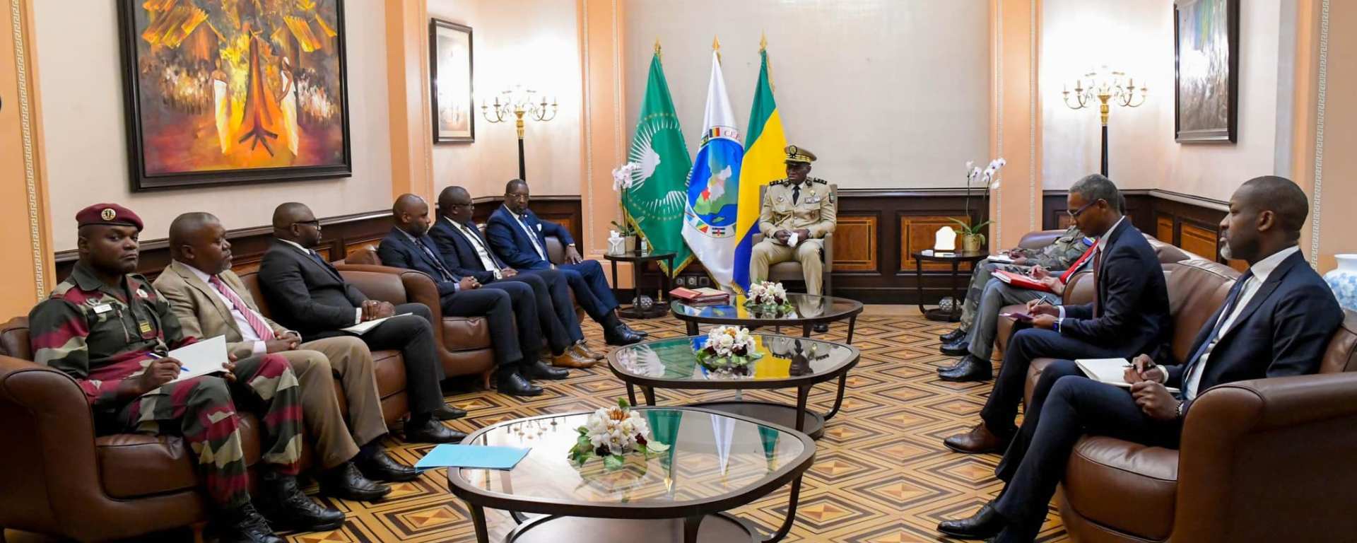 Le Président de la Transition, le Général Brice Clotaire Oligui Nguema a reçu le 3 mai 2024 au Palais Rénovation le ministre de la Culture, de la Jeunesse, des Sports et des Arts monsieur André Jacques Augand.