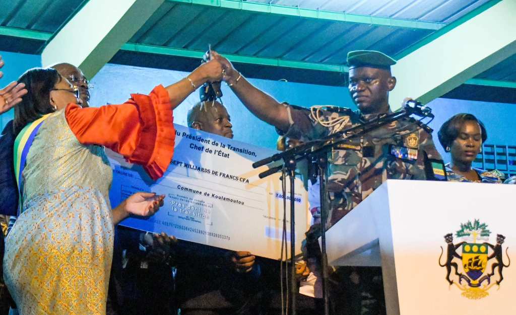 De retour dans le chef-lieu de la province, le Chef de l’Etat a, en compagnie de la Première Dame, rendu un hommage à feu Jean Stanislas Migolet, ancien Vice Premier Ministre de la République décédé le 6 juillet 1987. Par ailleurs, le Président de la Transition a procédé au lancement des travaux du bâtiment qui abritera une banque. La création de cette banque vient soulager les populations qui pour toutes transactions bancaires jusqu’à ce jour sont contraintes de se rendre dans la province soeur du Haut-Ogooué. Puis, le Chef de l’Etat a effectué la pose de la première pierre d’un complexe scolaire dans le 2ème arrondissement de la ville de Koulamoutou.