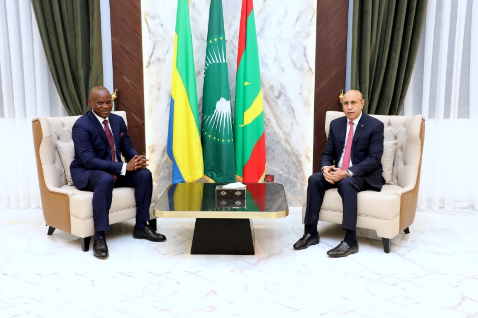 Réceptif, Mohamed Ould Cheikh El-Ghazouani a salué le bon déroulement de la Transition au Gabon, et surtout le respect des engagements par les nouvelles autorités et le caractère inclusif dudit processus. Il a ainsi rassuré son hôte du soutien de L’Union africaine à notre pays dans sa marche vers un retour à l’ordre constitutionnel et vers sa réintégration au sein de l’institution panafricaine.