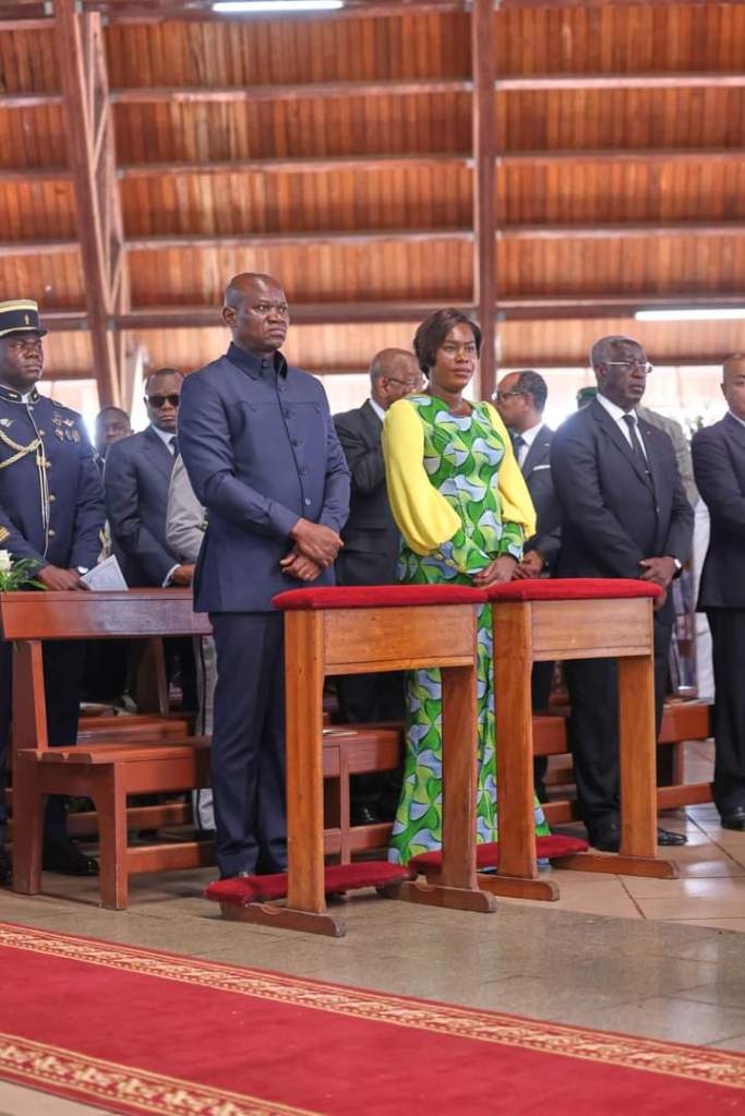 C’est accompagné de la Première Dame, Madame Zita Oligui Nguema ainsi que de plusieurs personnalités, notamment les membres du CTRI, les membres du gouvernement, les présidents d’institutions, les autorités locales et les populations que le Chef de l’Etat a pris part le samedi 8 juin 2024 aux côtés de la famille du défunt à cette cérémonie d’hommages qui s’est ouverte par une messe d’actions de grâce à la cathédrale Saint Hilaire de Franceville pour le repos de l’âme de l’homme d’Etat et du bienfaiteur qu’a été Omar Bongo Ondimba.