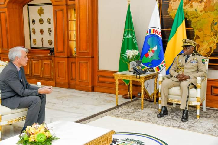 Le Président de la Transition, le Général Brice Clotaire Oligui Nguema s’est entretenu le 19 juin 2024 au Palais Rénovation avec Alexis Lamek, Ambassadeur, Haut Représentant de la République Française près la République Gabonaise.