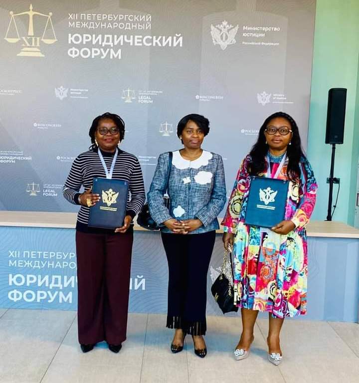 Lors de la mission conduite par Madame le Secrétaire Générale du Ministère de la Justice, Garde des Sceaux, Lydie Stéphanie MAMIAKA, représentant le Ministre Paul-Marie GONDJOUT empêché, au Forum Juridique international de Saint-Pétersbourg en Russie. Les mémorandums signés respectivement par Johanna Rose MAMIAKA, Ambassadeur Extraordinaire et Plénipotentiaire de la République Gabonaise près la Fédération de Russie et le Ministère de la Justice de la Fédération de Russie Constantin TCHOUITCHENKO, reviennent sur les spécificités et les domaines de coopération suivants :