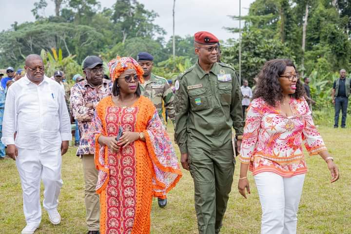 Une importante délégation ministérielle, conduite par la Ministre de l’Environnement, du Climat et du Conflit Homme-Faune, Arcadie Svetlana, Minguengui Ndomba Epse N’zoma, accompagnée de ses collègues de la Communication et des Médias, Laurence Ndong et des Eaux et Forêts Général de Brigade Maurice Ntossui, s’est rendue le 28 juillet 2024 au village Ekouk, kango, dans le département du komo.