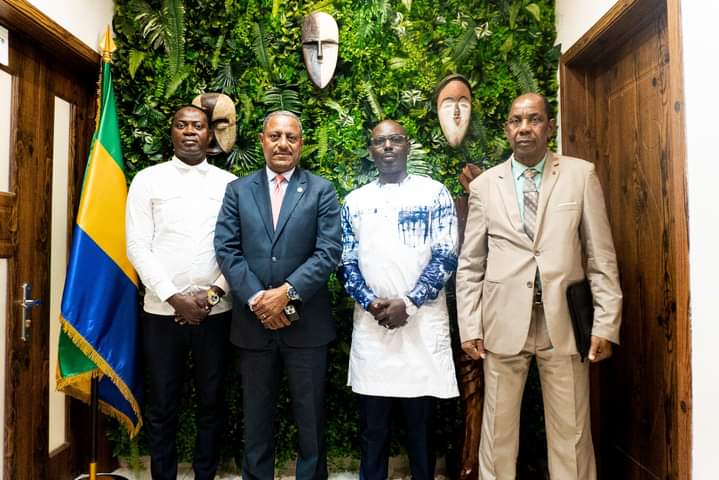 Le vendredi 2 août, une délégation composée de diplomates de Guinée Conakry, du Mali, ainsi que d’autres pays issus de l’ancien empire Wassoulou (ou empire Mandingue), accompagnés des membres de l’ONG GNVT et d’une chanteuse (griotte) guinéenne, a été honorée d’une audience au cabinet du Ministre du Tourisme et de l’Artisanat, Pascal Ogowe Siffon.
