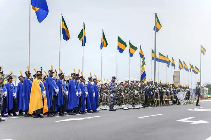 Le couple présidentiel qu’accompagnaient les membres du CTRI, du gouvernement, les présidents des institutions, le corps diplomatique accrédité au Gabon ainsi que les personnalités civiles et militaires et les dignitaires de la République a assisté au défilé pédestre, aérien, motorisé et naval des différentes Forces de Défense et de Sécurité qui ont marqué ces instants.