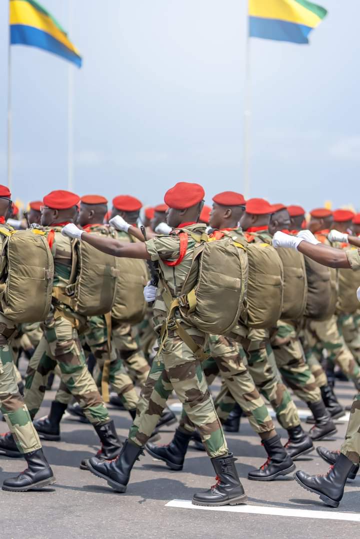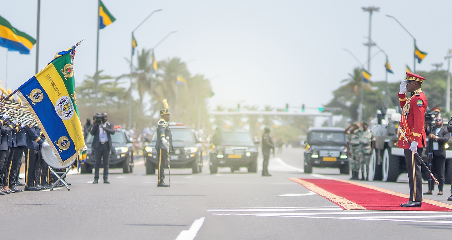 Le couple présidentiel qu’accompagnaient les membres du CTRI, du gouvernement, les présidents des institutions, le corps diplomatique accrédité au Gabon ainsi que les personnalités civiles et militaires et les dignitaires de la République a assisté au défilé pédestre, aérien, motorisé et naval des différentes Forces de Défense et de Sécurité qui ont marqué ces instants.