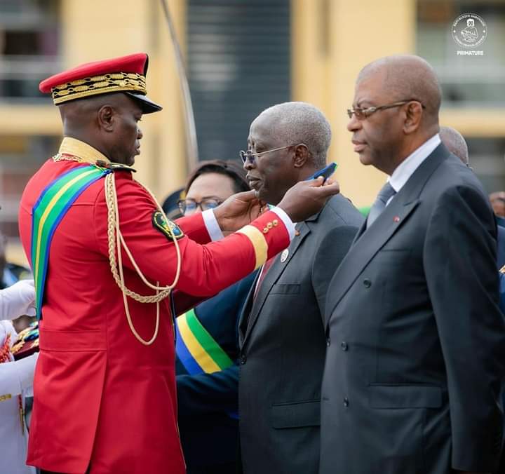 Les festivités ont débuté par une cérémonie solennelle au cours de laquelle le Président de la Transition, Brice Clotaire Oligui Nguema, a décerné des décorations honorifiques à plusieurs compatriotes qui se sont illustrés avec bravoure le 30 août 2023. Ces distinctions ont été attribuées en reconnaissance de leurs actions héroïques lors de cette journée historique, qui a marqué un tournant décisif pour le pays.