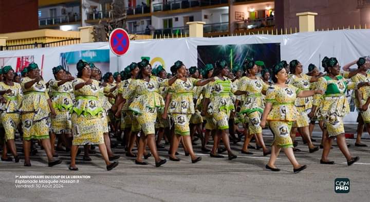 La cérémonie s’est poursuivie par une impressionnante parade militaire, paramilitaire et civile, à laquelle le Président et la Première Dame, Zita Oligui Nguema, ont assisté avec attention. L’un des moments forts de cette parade a été le passage très applaudi des associations des épouses des personnels des Forces de Défense et de Sécurité, témoignant ainsi de l’engagement des femmes, frange essentielle de la population.
