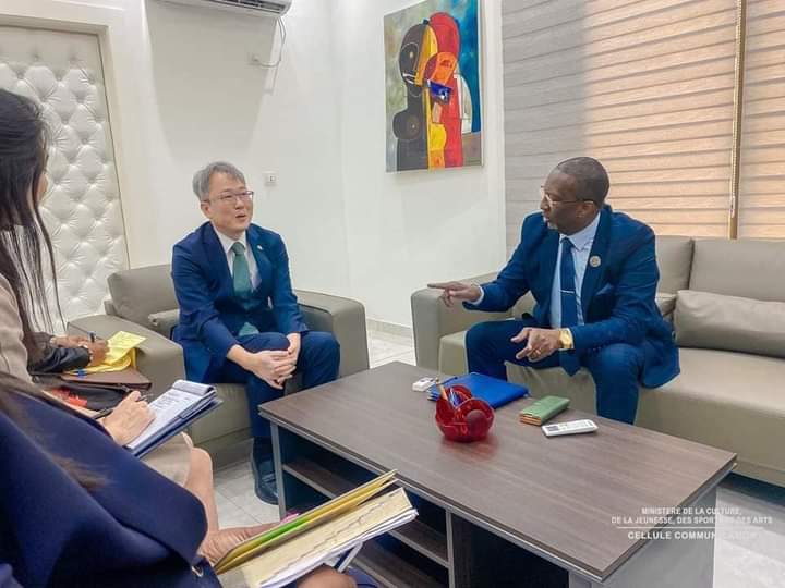 Le Ministre de la Culture, de la Jeunesse, des Sports et des Arts, le Dr André Jacques Augand, a reçu le lundi 16 septembre 2024, SHIN Song Bum, ambassadeur de la République de Corée au Gabon. Au cœur de leurs échanges figurait la préparation de l’édition 2024 de la Coupe de l’Ambassade de Corée, prévue pour le samedi 21 septembre 2024, en collaboration avec la Fédération Gabonaise de Taekwondo.