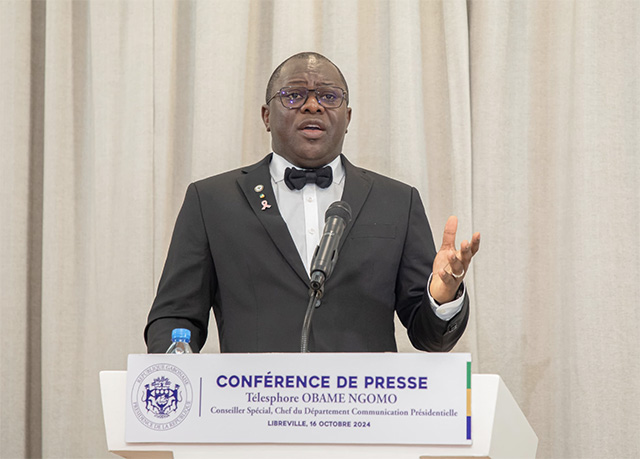 Le Conseiller Spécial, Chef du département Communication présidentielle, Télésphore Obame Ngomo, a animé une conférence de presse le 16 octobre dernier dans les locaux du Palais Présidentiel.