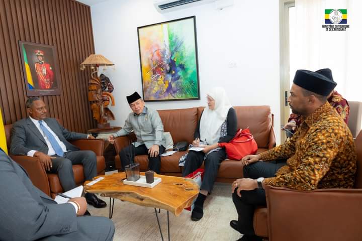 Aujourd’hui, une délégation officielle indonésienne, menée par Son Excellence Usra Hendra Harahap, Ambassadeur d’Indonésie au Gabon (résident à Abuja), a été accueillie par le Ministre du Tourisme et de l’Artisanat du Gabon Pascal Ogowe Siffon pour une audience de coopération. Cette rencontre vise à renforcer les liens entre les deux nations dans les secteurs du tourisme et de l’artisanat, et à examiner les opportunités d’investissement et d’échanges culturels.