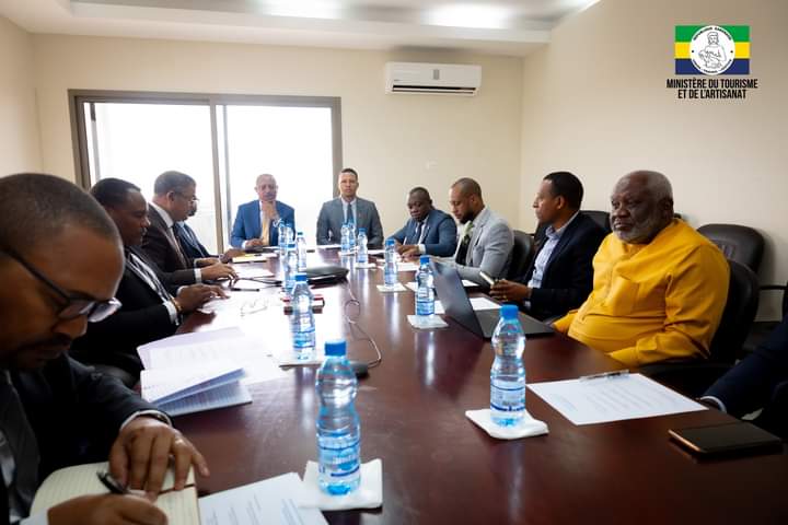 Le 21 octobre dernier, le Ministre du Tourisme et de l’Artisanat, Pascal Ogowe Siffon, a reçu François Mbongo Rafemo Bourdette, Ministre de l’Industrie, accompagné d’une délégation du groupe Afrinest. Cette rencontre visait à établir les bases d’une coopération entre les deux ministères et Afrinest pour le lancement d’un chantier naval au Gabon, avec en ligne de mire la création d’infrastructures favorisant l’expansion du tourisme fluvial.