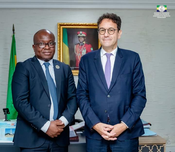 Le lundi 27 octobre, le Pr Hervé Ndoume Essingone, Ministre de l’Enseignement Supérieur, de la Recherche Scientifique et de l’Innovation Technologique a reçu en audience l’Ambassadeur de France au Gabon, Fabrice MAURIES.