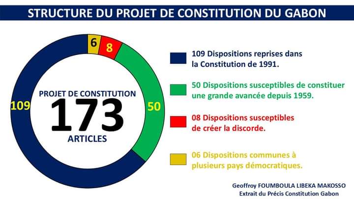 2. *Préambule, Articles 1, 33, 94 et 169:* reconnaissance de nos Ancêtres, obligation d’enseigner nos langues nationales dans les écoles, interdictions de l’homosexualité au Gabon (interdiction à vie) et affirmation de la politique nataliste;