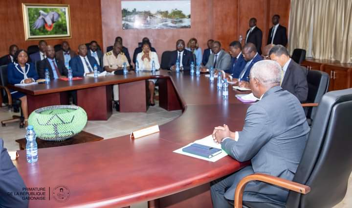 Le Premier ministre de transition, Raymond Ndong Sima, en sa qualité de président du comité de pilotage, a dirigé une séance de travail avec les membres du comité technique axée sur les travaux de l’audit des primes et des effectifs des administrations des régies financières et administrations assimilées, le 4 novembre 2024.