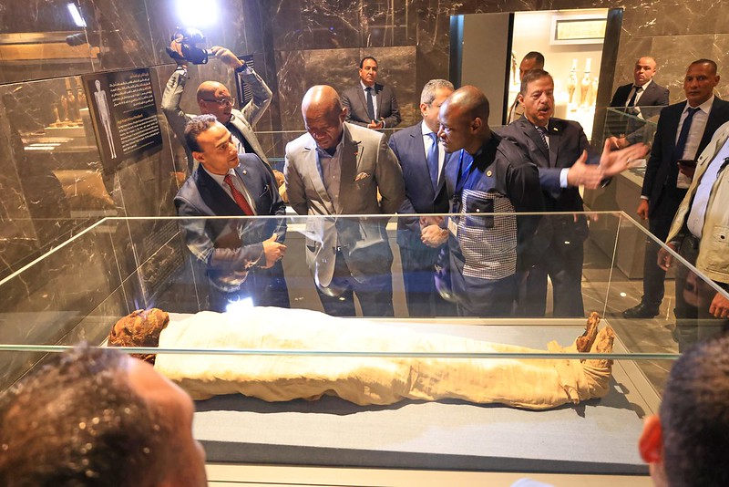 Poursuivant son séjour en terre égyptienne, le Chef de l’Etat a effectué le 29 novembre 2024 une série de visites des sites stratégiques et emblématiques du pays dont le Musée National de la Civilisation égyptienne. Vitrine de l’histoire et du patrimoine de ce pays, cette structure abrite les vestiges des souverains ayant marqué l’histoire de l’Égypte antique et l’héritage inestimable de cette civilisation millénaire.