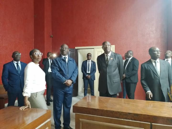 C’est en compagnie du Premier Président de la Cour d’Appel du Tribunal de Première Instance de Libreville Nancy ENGANDZAS et le Procureur Général près ladite Cour, Eddy MINANG que le Ministre de la Justice, Garde des Sceaux, Paul-Marie GONDJOUT, a visité dans la matinée du vendredi 06 décembre 2024 l’ensemble des composantes que compte le Tribunal de Première Instance de Libreville.