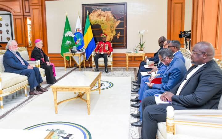 Le Président de la Transition, le Général Brice Clotaire Oligui Nguema s’est entretenu le 6 janvier 2025 au Palais Rénovation avec Monseigneur Javier Herrera Corona, Nonce Apostolique en République Gabonaise.