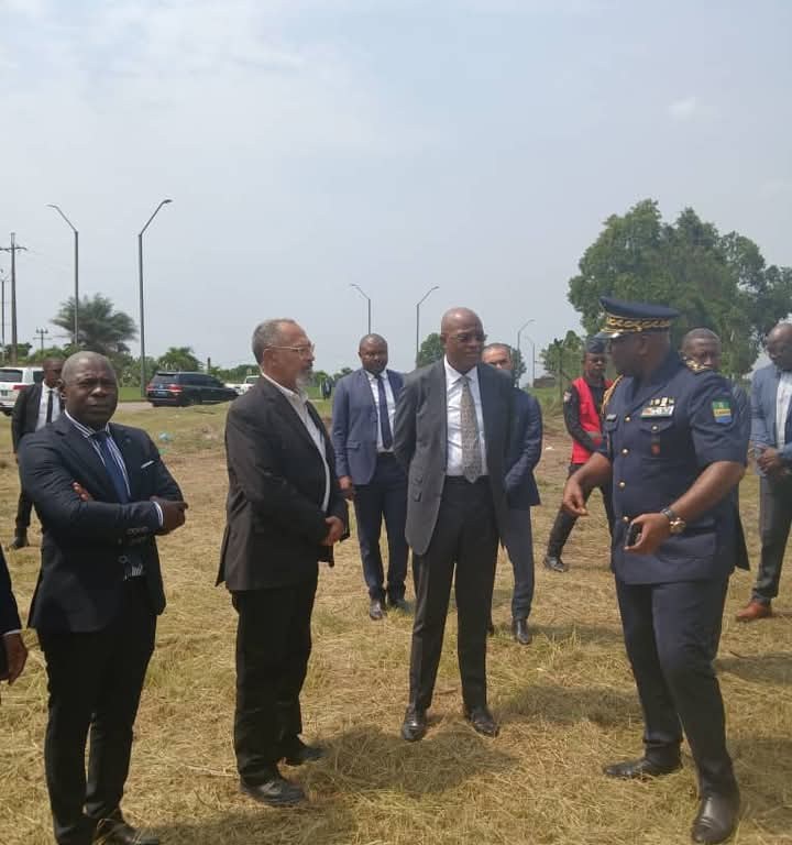 La visite guidée du site devant abriter le Tribunal de Première Instance de la commune d’Owendo, était conduite par le Général Arnaud Sandri NOMBO, Délégué Spécial de la Commune éponyme qu’accompagnaient les personnes ressources dans le domaine du foncier au Gabon.