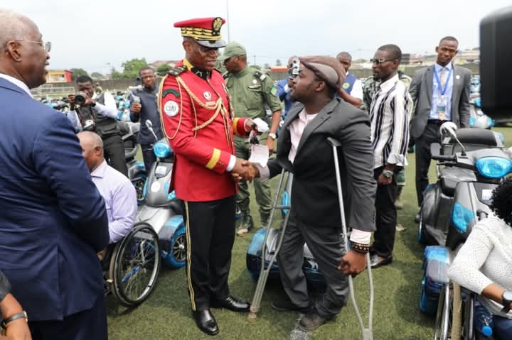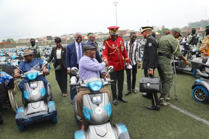 C’est au cours d’une cérémonie dans l’enceinte du stade de Nzeng Ayong dans le 6e arrondissement de Libreville, en présence de la Première Dame, du CTRI, du Vice Président de la République, du Premier ministre et des membres du gouvernement que le Président de la République Brice-Clotaire OLIGUI NGUEMA a procédé le jeudi 16 janvier 2025 à la distribution du matériel orthopédique aux personnes vivant avec un handicap.