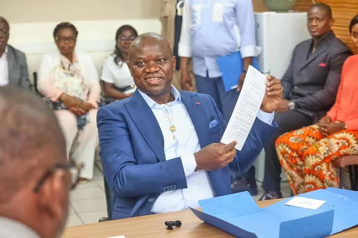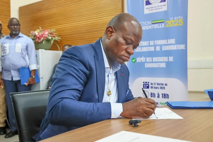 Accompagné de ses proches collaborateurs et soutenu par une foule de sympathisants, il s’est rendu au Ministère de l’Intérieur, situé sur à l’avenue de Cointe dans le 3e arrondissement de la Commune de Libreville, pour accomplir cette étape cruciale du processus électoral.