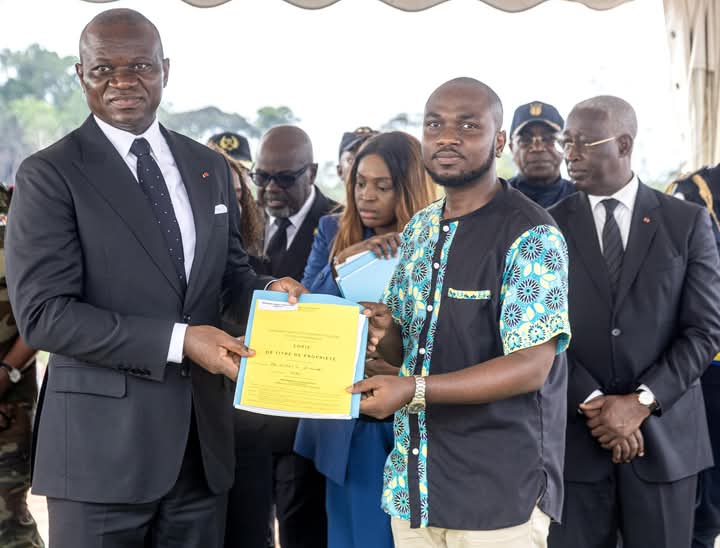 Cette remise de titres fonciers qui est dans sa 3e phase s’inscrit dans le cadre d’un ambitieux programme immobilier à fort impact social ayant pour objectif d’élargir et d’améliorer l’accès à la propriété foncière pour le plus grand nombre.Réalisé via un partenariat entre l’État gabonais et la Société Civile Immobilière ” des Résidences pour tous”, ce programme résulte de la vision, de la volonté et de l’engagement des plus hautes autorités à restaurer la dignité des gabonais.
