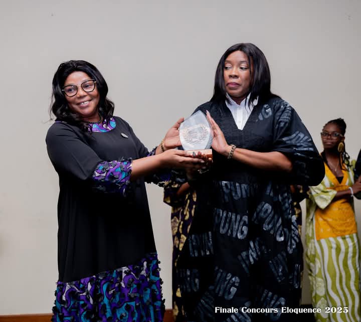 Le Ministre de la Femme et de la Protection de l’Enfance Élodie Diane Fouefoue epse SANDJOH a rehaussé, par sa présence, la finale de la première édition du Concours d’Eloquence dédié aux Femmes.